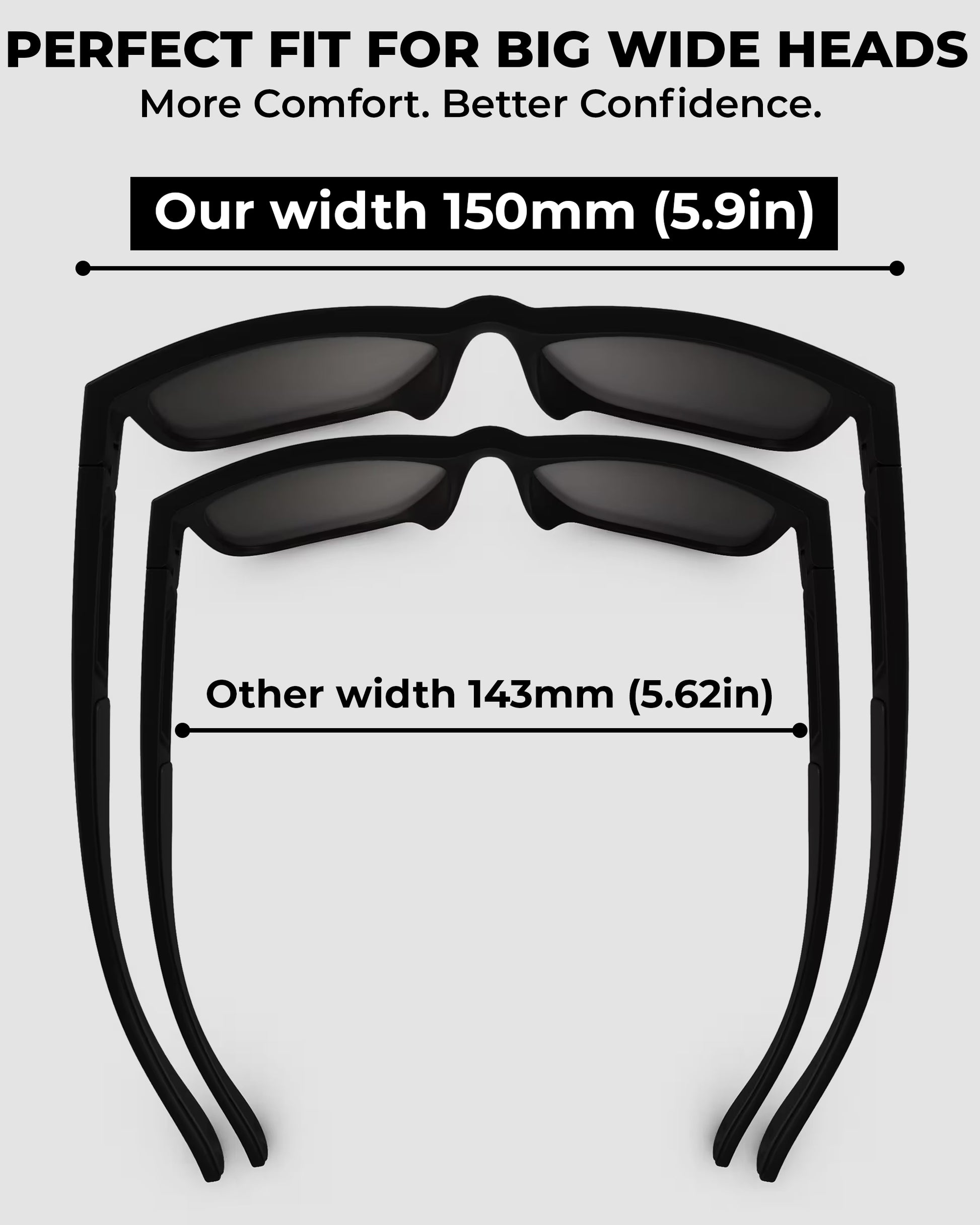 - EXTRA LARGE XL SUNGLASSES FOR BIG HEADS : Built with a 150mm wide frame to fit comfortably on big or wide faces without pressure. These XXL oversized sunglasses deliver a secure, comfortable fit for large heads and wide temples, making them the ultimate big head sunglasses for men seeking both comfort and style.